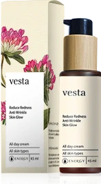 Vesta v sobě snoubí sílu tradiční fytoterapie, moderní biotechnologie a aromaterapie, díky nimž poskytuje dokonalou péči zarudlé pleti či pleti s kuperózou, která trpí nedostatečnou pevností a pružností krevních kapilár. Krém je lehký, dobře vstřebatelný, hydratační, zklidňující a pocitově ochlazuje pleť. Díky vysokému obsahu synergického komplexu bylin a dalších účinných látek blahodárně ovlivňuje regeneraci a dobrý stav všech vrstev pokožky. Výborně působí i proti vráskám a předčasnému stárnutí pleti. Je rovněž nejlepší volbou zklidňujícího pleťového krému po opalování.